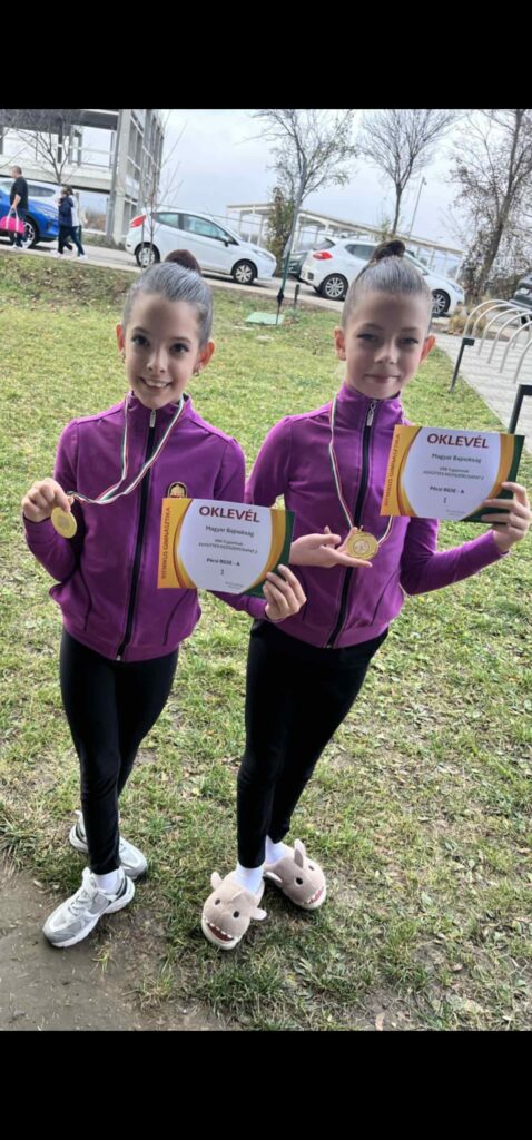 Vörös Laura Natasa 4.b és Sándor Lilla 5.b osztályok tanulók, a 2025. november 16-án, Törökbálinton megrendezett Magyar Bajnokság Együttes kéziszer csapatverseny, gyermek VSK2 kategóriában 20 induló csapat közül aranyérmet szereztek a Pécsi RGSE – A csapat tagjaként.