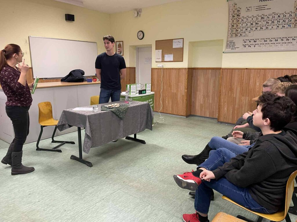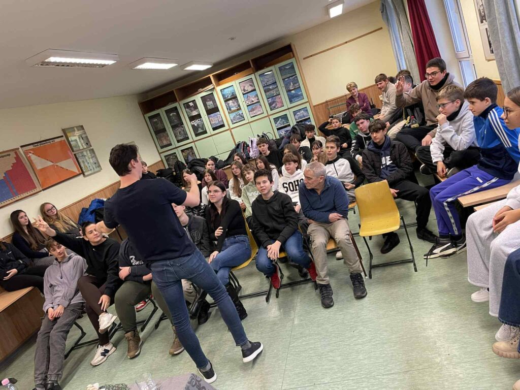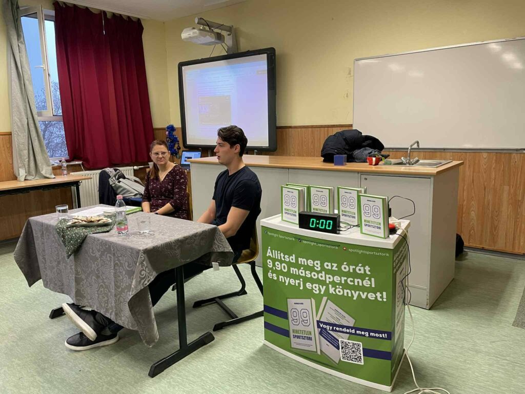 2025. december 16-án rendhagyó irodalomóra keretében Hadobás Olivér, iskolánk egykori diákja, a 2025. december 16-án rendhagyó irodalomóra keretében Hadobás Olivér, iskolánk egykori diákja, a 99 hihetetlen sportsztori – Legendák érdekességek a sportbiznisz világából röviden című könyvét mutatta be a 7. és 8. évfolyamos diákjainknak.