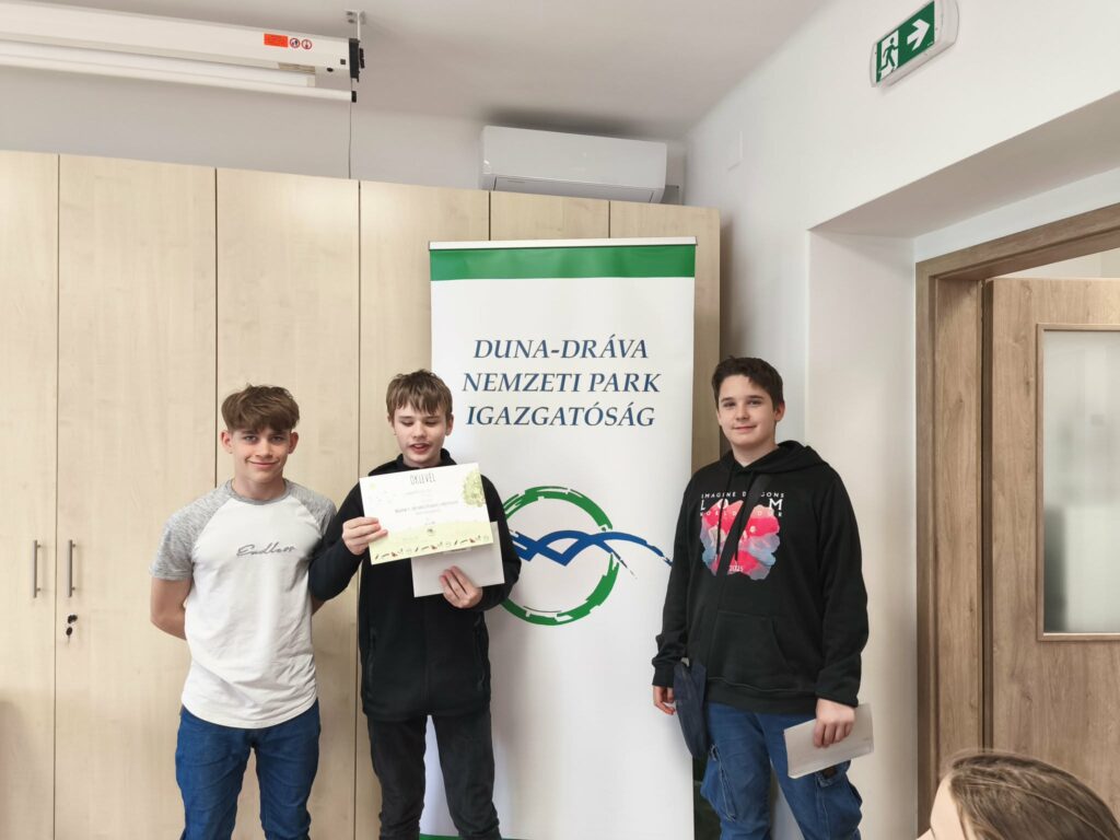 Madarak és Fák Napja Országos Verseny területi/vármegyei fordulóján a 8.b osztályból összeállt csapat nagyon szoros küzdelemben megyei 3. helyezést értek el. A csapat tagjai: Balázs Vajk, Gál Zoltán, Selényi Ákos. Gratulálunk kiemelkedő biológia teljesítményükhöz!